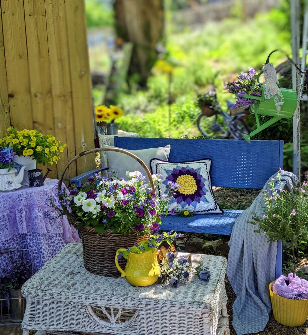 I enjoy creating outdoor rooms, so that there are many places to sit and enjoy nature and the company of others, whether it be a large gathering or just a cozy spot for two. The most I have spent on one area is just $80. With a bit of resourcefulness and bargain hunting, it can be done for even less.