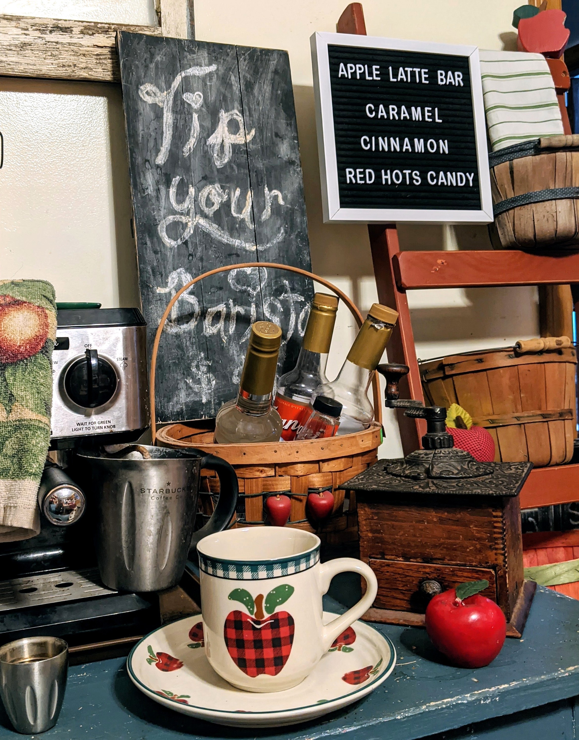 Did you notice the coffee bar in the kitchen? Caramel apple lattes are delicious!!! You can even make homemade stovetop syrups using sugar, water, and various flavors from candy, like cinnamon red hots. YUM!
