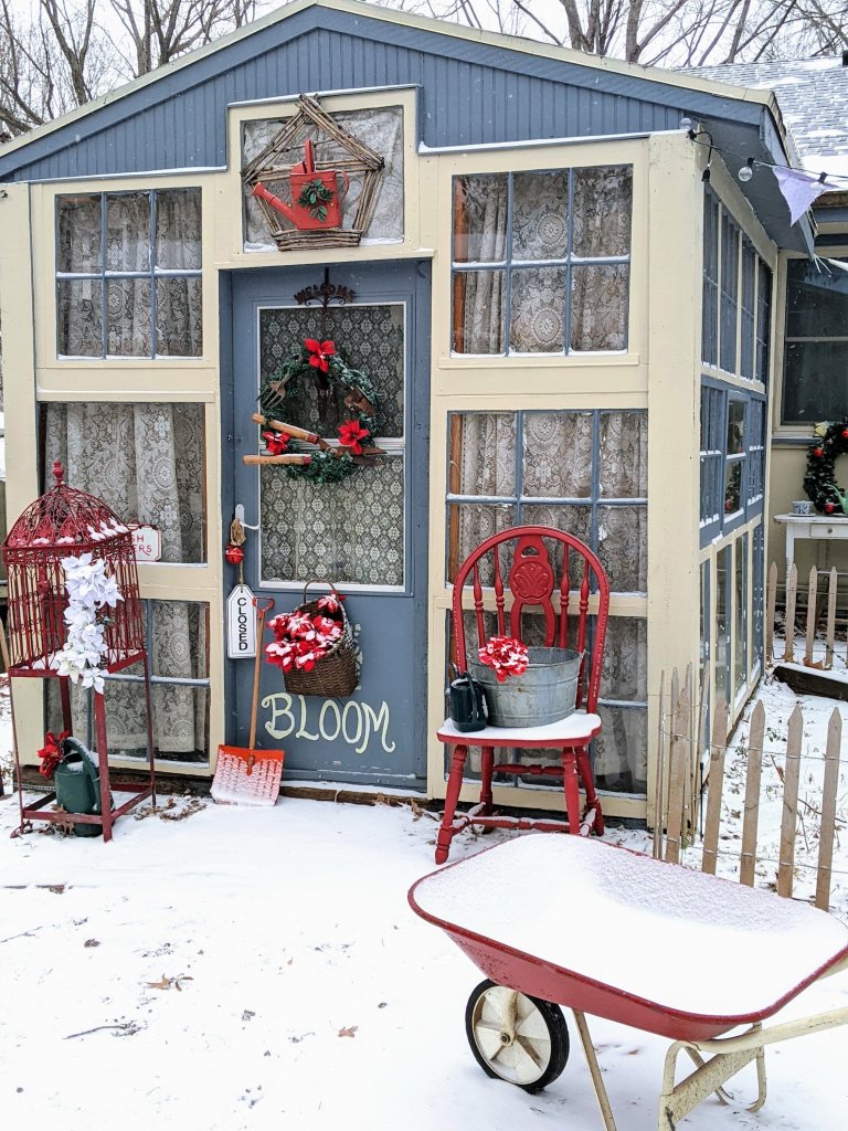 When winter arrives and my Midwest garden becomes dreary, I dress it up with a bit of color. Of course, a blanket of snow definitely helps to beautify any garden. Why don’t we take a little stroll through Comfy Lane Garden!