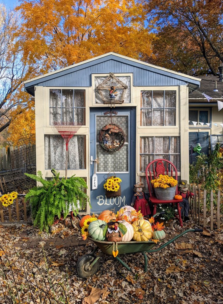 Even the greenhouse gets a touch of Thanksgiving decor.