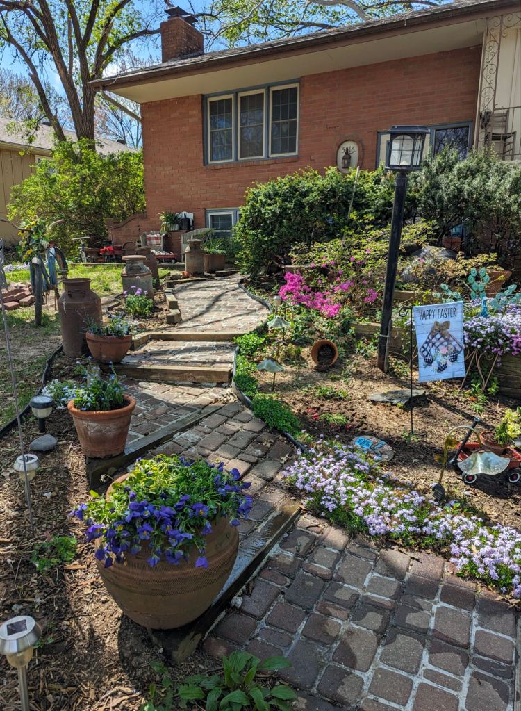The garden is my happy place where I get to be creative. I am not a master gardener by any means; I simply love flowers and playing in the dirt. Our yard has many challenges, but I am not one to back away from a challenge, or two, or three….! For me, gardening is art, creating a haven of joy for myself and others. Here is a Spring tour of those creative endeavors. I hope you find joy!