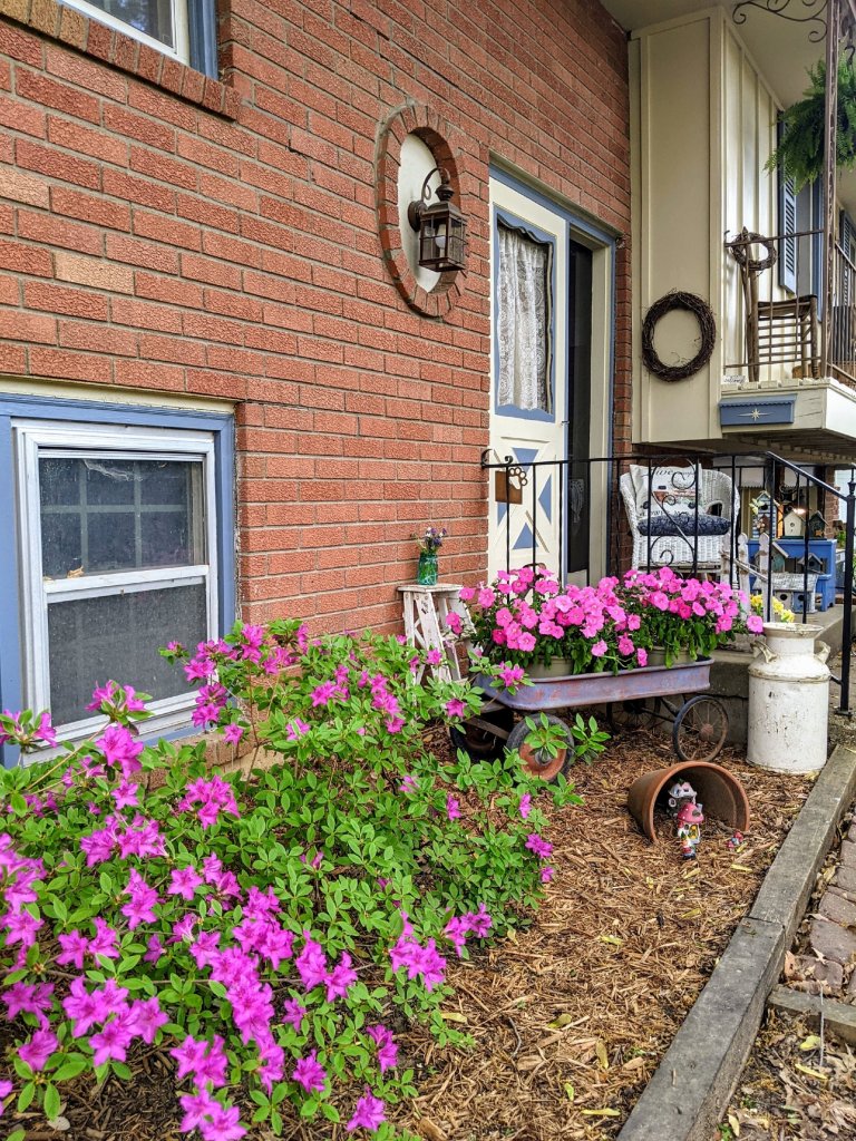 When the azaleas match the wagon full of petunias, it makes quite a colorful impact! Is your old wagon parked in the garage collecting dust? Roll it into your yard, fill it with flowers and take note of how neighbors’ admire the object of your curb appeal.