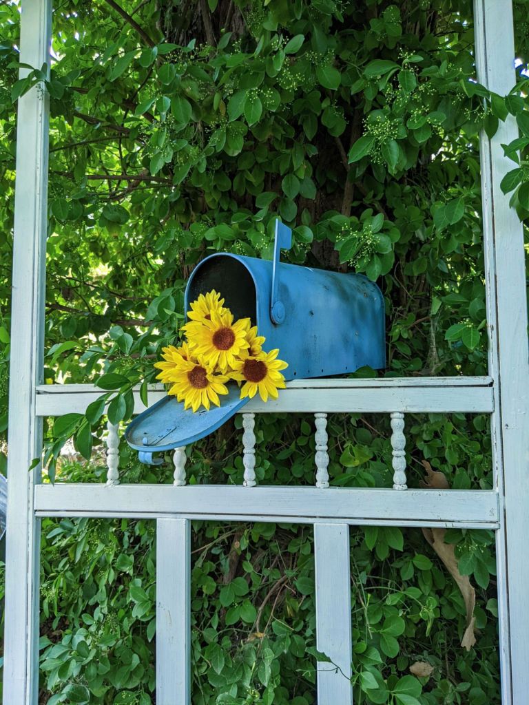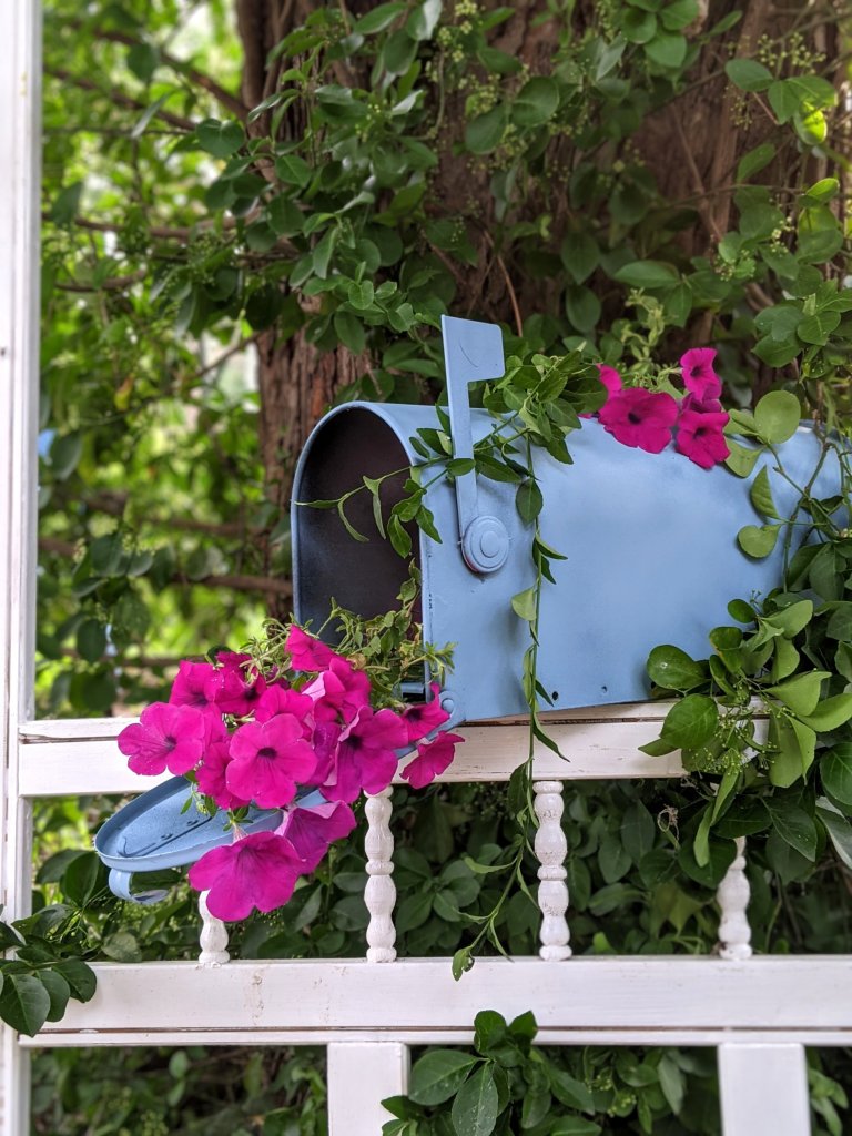 When I found this old mailbox, I knew it would look darling painted blue. Once I found the perfect spot to display it, I just had to add some flowers. No junk mail in this mailbox!