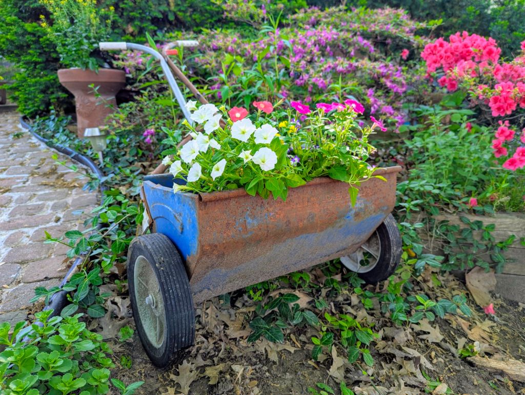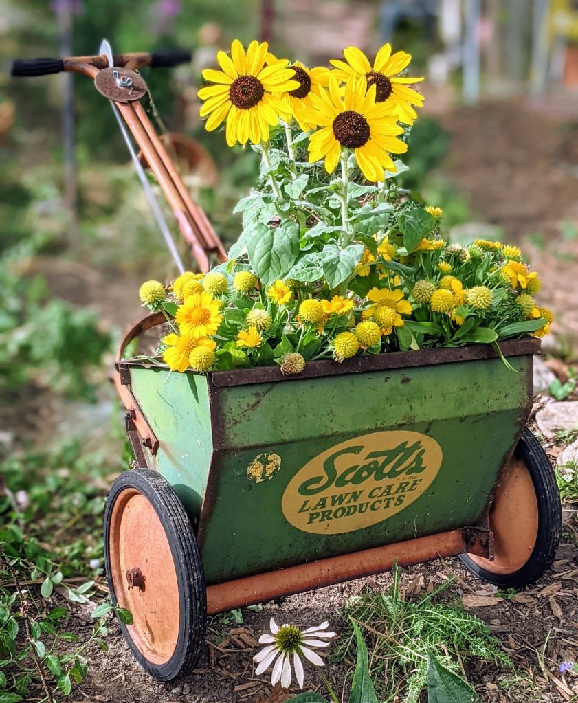 This ol’ spreader keeps spreading the love for blooms year after year in the garden!