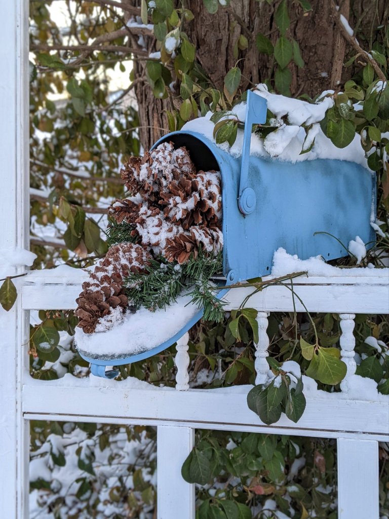 It’s become a seasonal tradition to change this mailbox. Snow takes this vignette to a whole nother level!