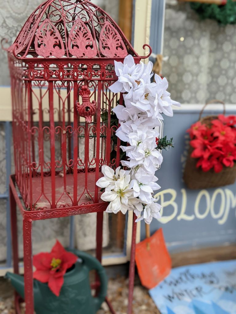 Can you tell which holiday it is by the flowers blooming from the vintage oil cans?! Christmas!!!