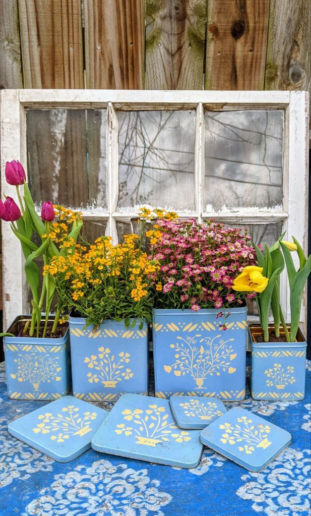 Matching tins for the win! They are a rare vintage set from ReStore. Aren’t they blue-tiful!