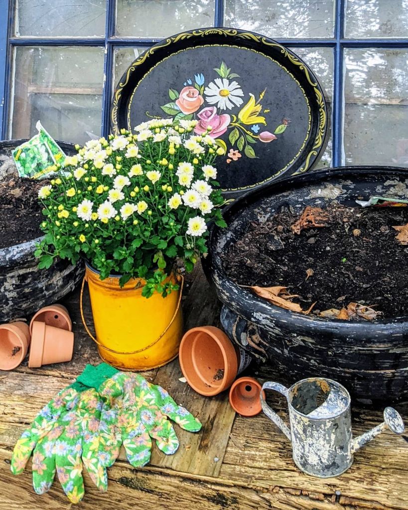 Yellow makes this paint can shine, especially when filled with white/yellow mums. So pretty!
