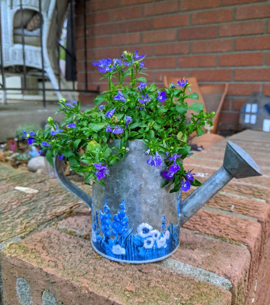 Violas in this watering can are the perfect match. They’re just hanging out on the corner looking too cute!