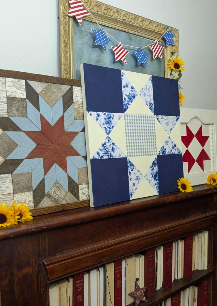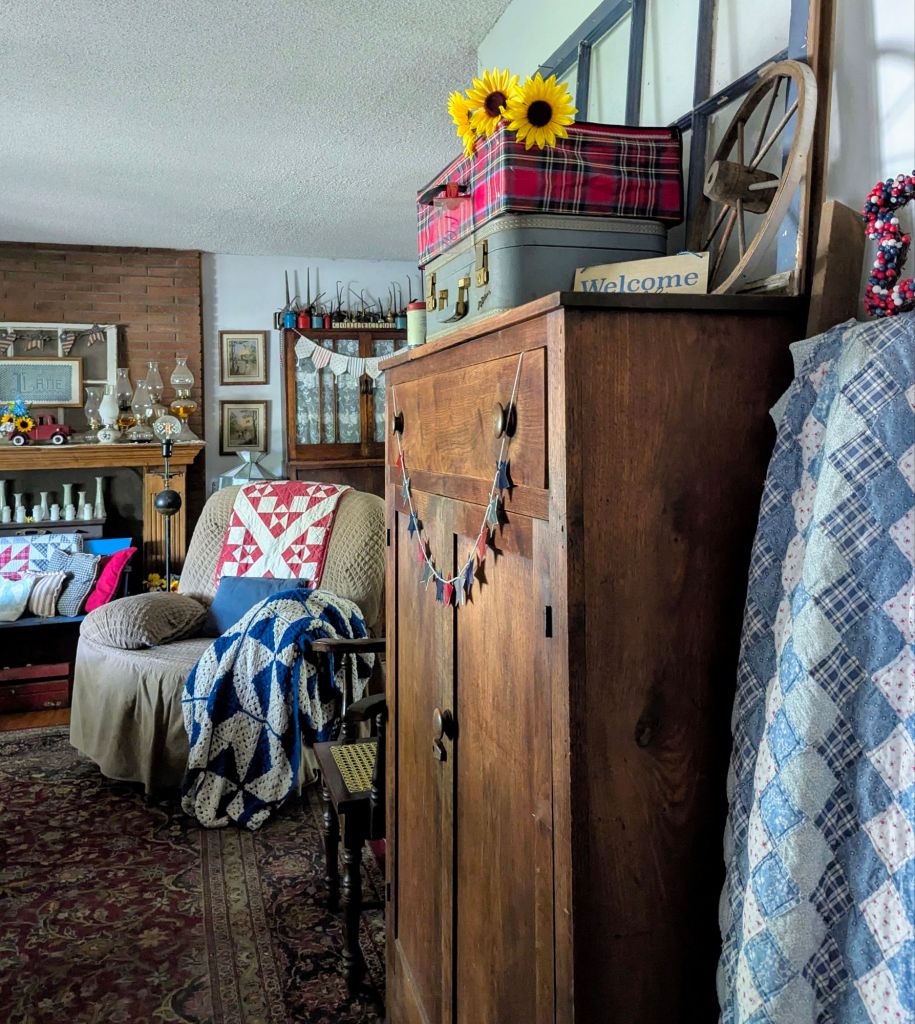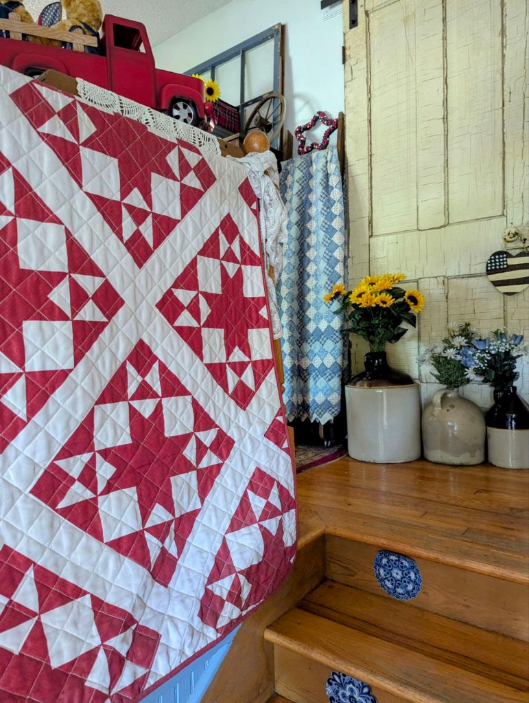 Displaying colorful quilts is a wonderful way to decorate for an Americana Summer… and the Fourth of July.