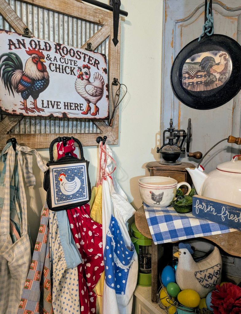 Our cozy kitchen corner is devoted to chickens. I’m a chicken mom now with 4 new chicks this year. It’s an adventure!