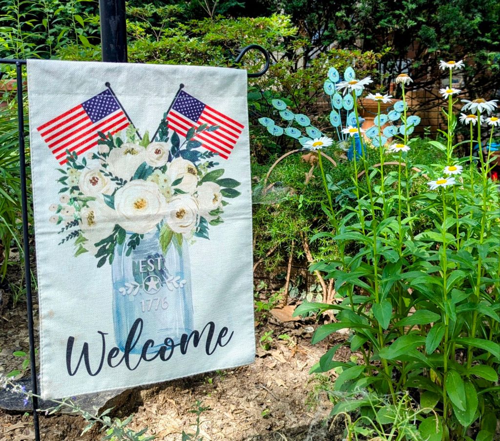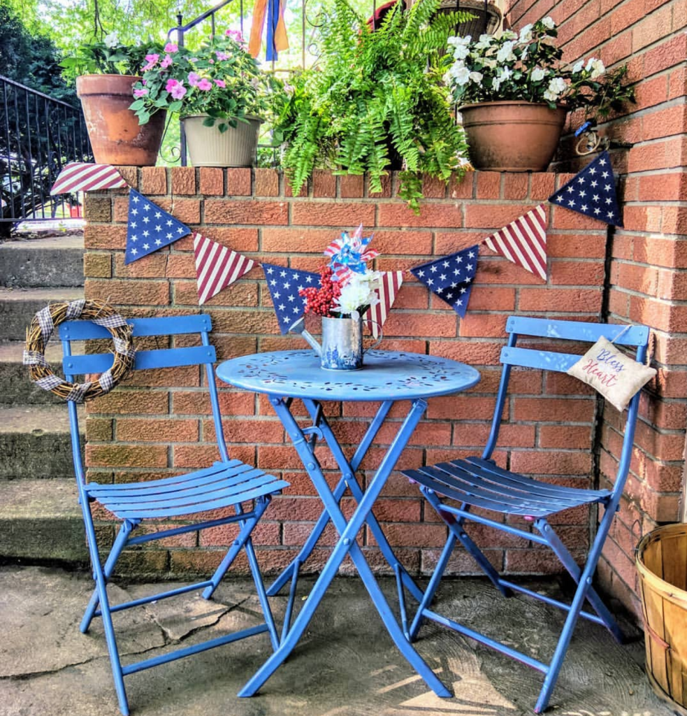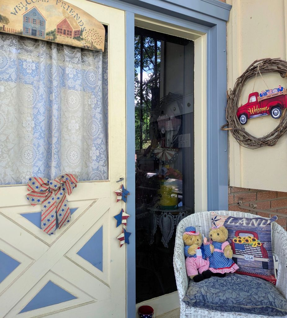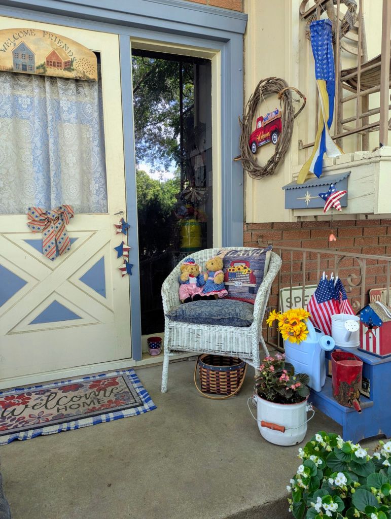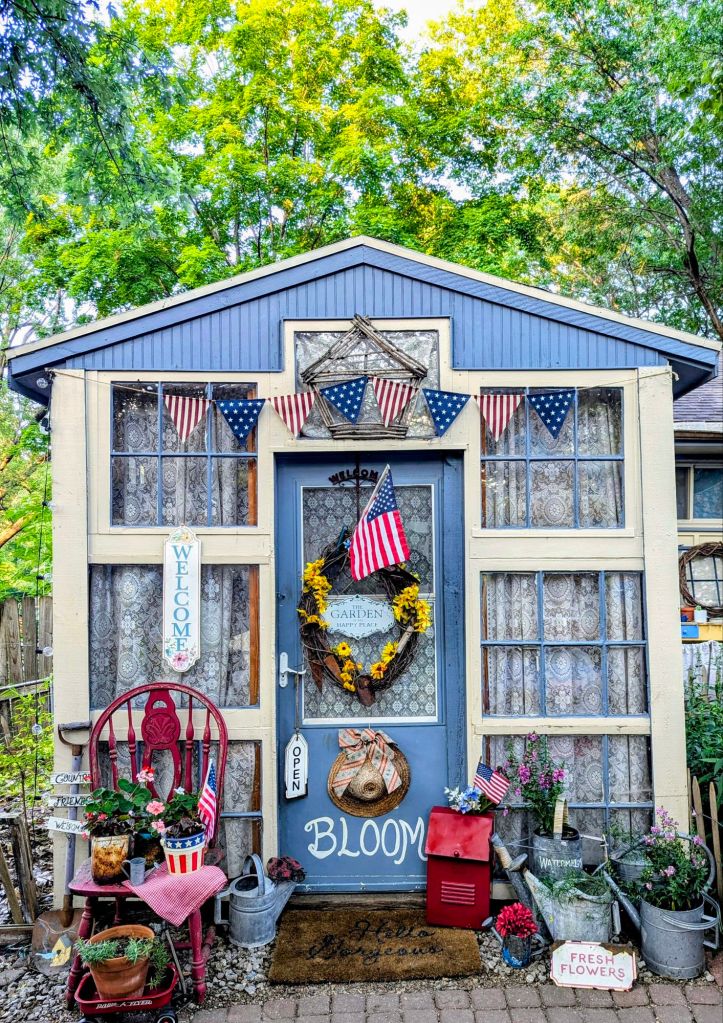Since we didn’t get to open our doors to family and friends on the 4th, I decided to welcome you all to our home for a cozy Americana decor tour. I hope you feel the welcoming warmth and cozy touches… from the blue arbor and winding pathway, to our quaint front porch and even backyard greenhouse. I’ve also included my Top 10 Americana Decor Tips to help in creating your own red, white and blue-tiful summer.