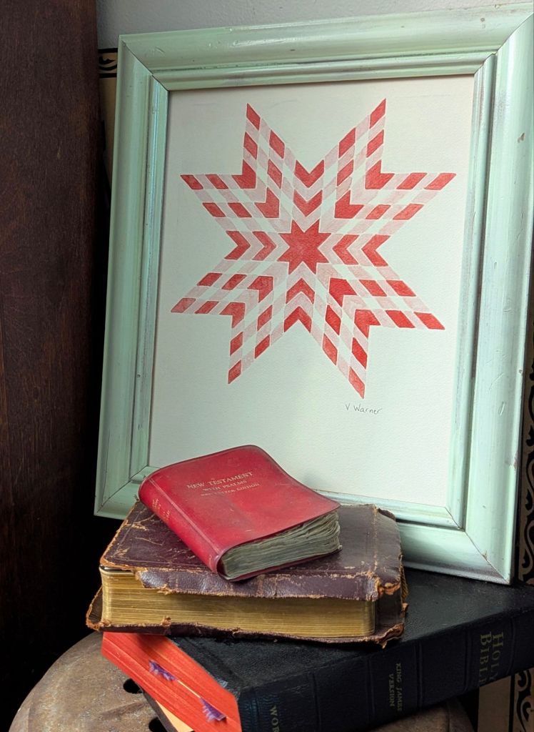 I have an affinity for barn star quilt patterns. The one on the left was made by an Amish grandpa, my first star.