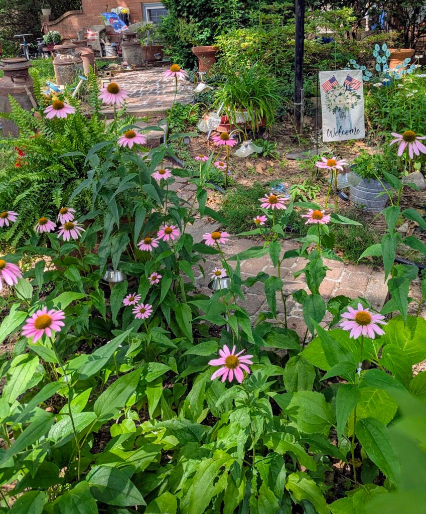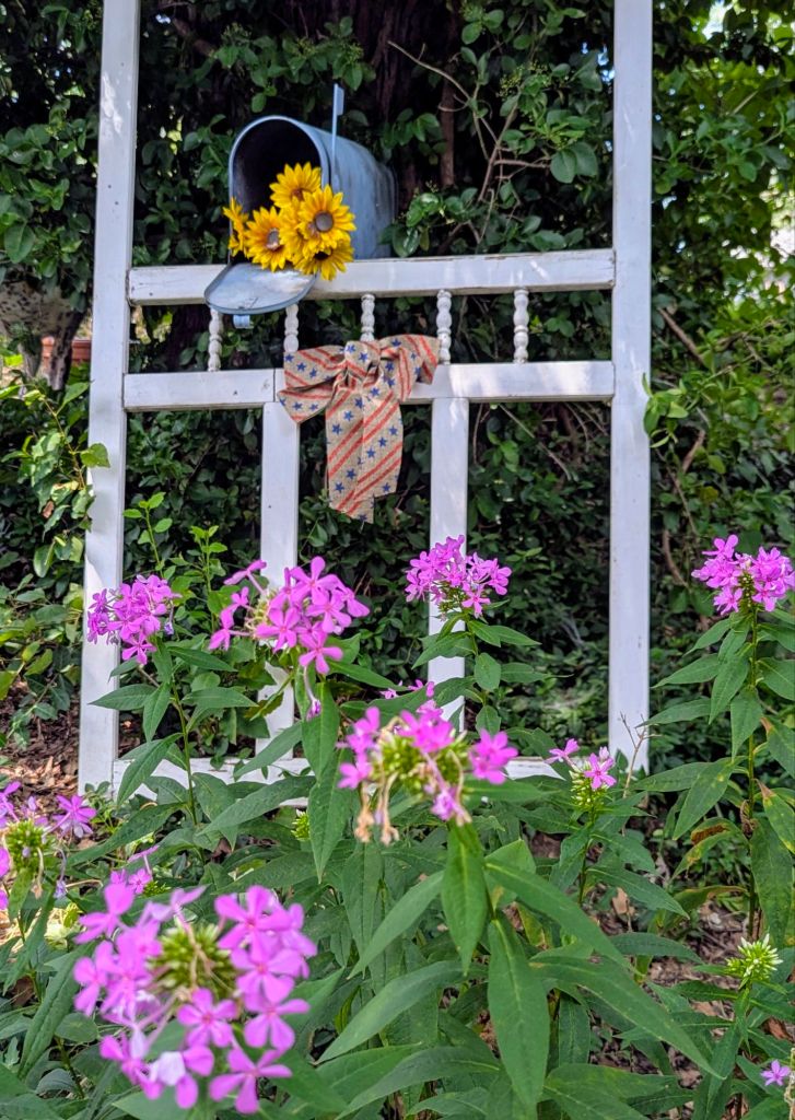A simple bow adds a bit of Americana to the backyard garden. Lots of things are blooming right now, including this Phlox.