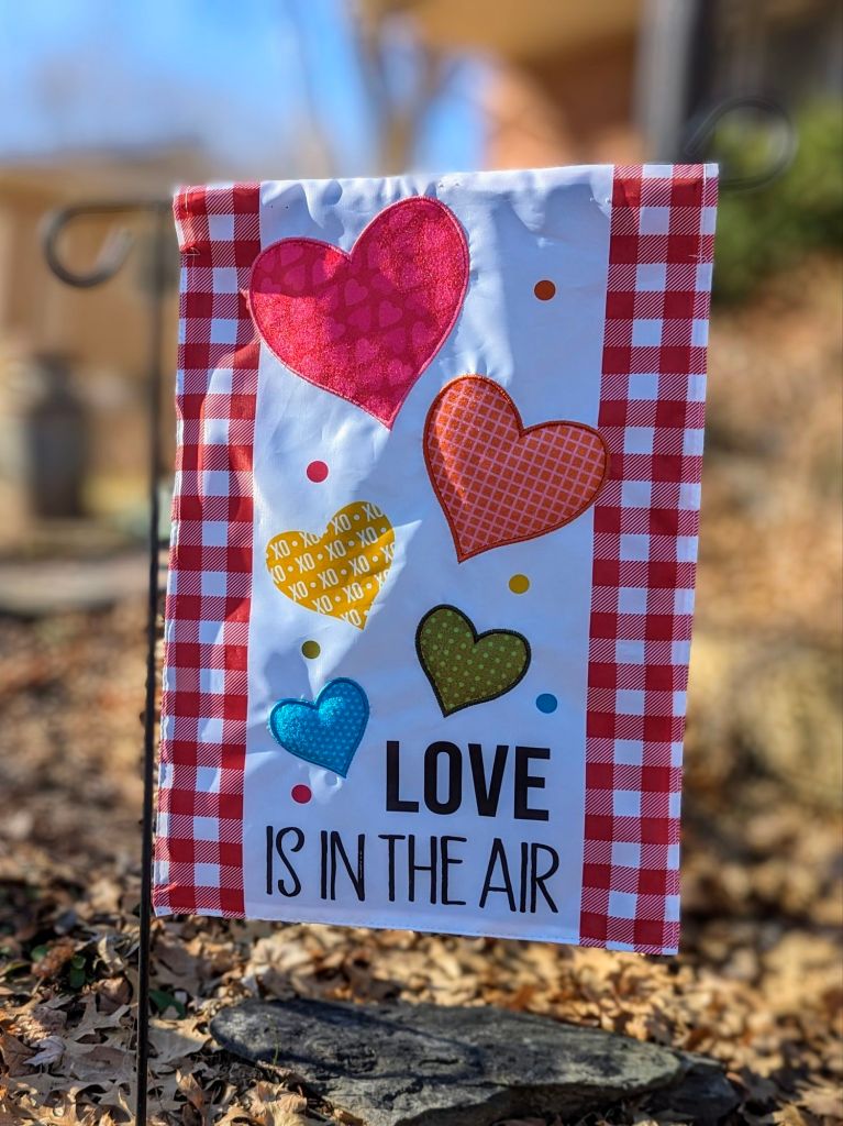 A pathway garden flag says it all. I chose this one because of the red check border. It matches the inside decor. I’m a matchy matchy kind of decorator, who likes a cozy cottage flow from the curb throughout the cottage.