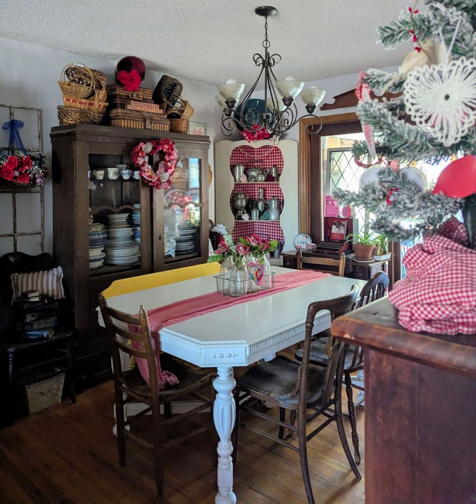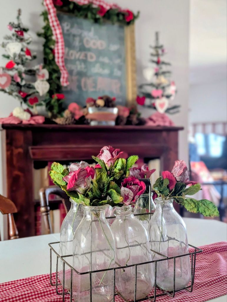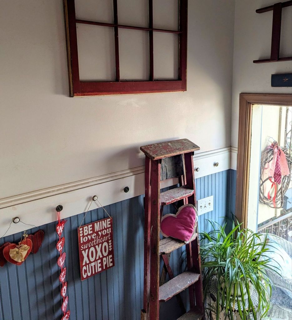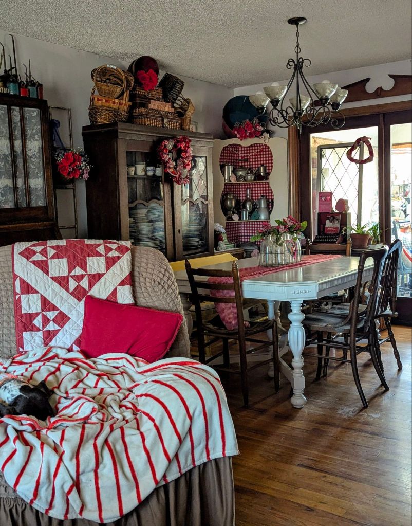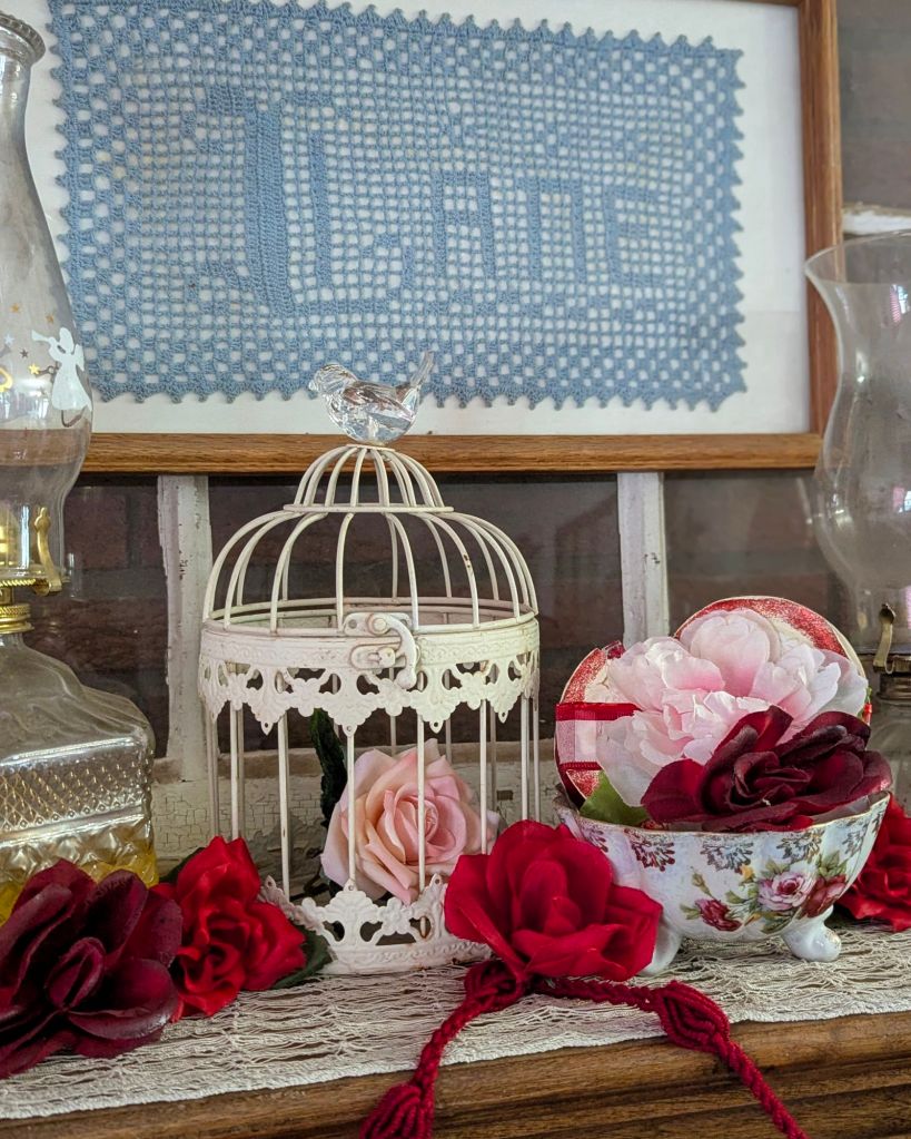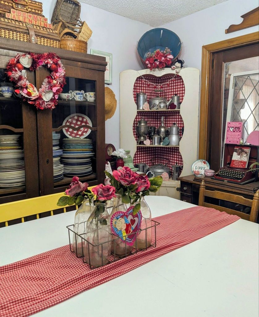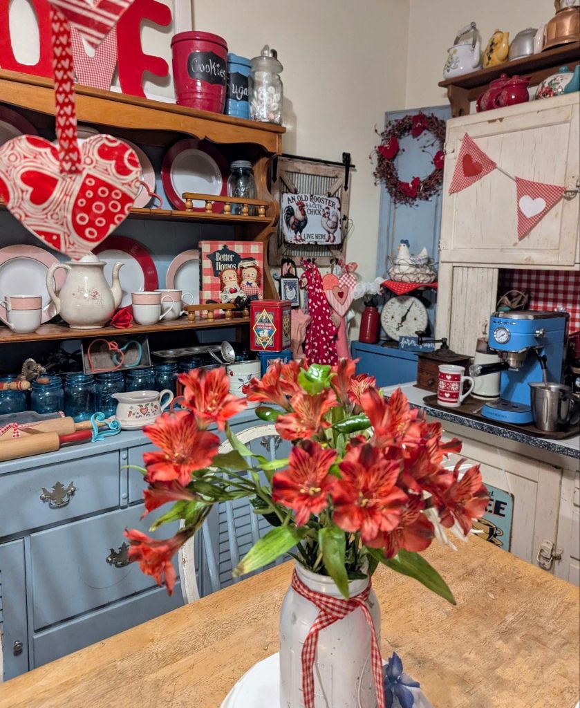 Here are some of the ways that I decorate my home, Comfy Lane Cottage, for Valentine’s Day. It is my hope and prayer of blessing others, rather than merely impressing. May you find encouragement and joyful inspiration for your own home as well.