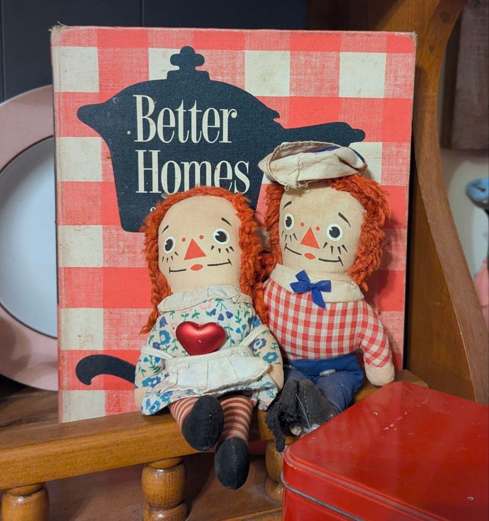 Such a cute couple! Raggedy Ann and Andy are quite raggedy. They’re from an Instagram friend’s online flea market.